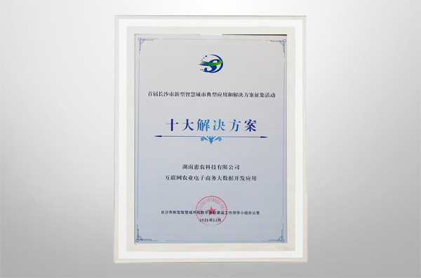 “互聯網農業電子商務大數據開發應用”入選首屆長沙市新型智慧城市“十大解決方案”。
